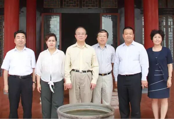 郭峰馆长与国家文化部副部长丁伟、陕西省文化厅厅长刘宽忍,咸阳市副市长李晓静在清渭楼合影留念