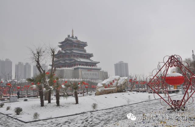 雪中的清渭楼,银装素裹矗立于雪中。