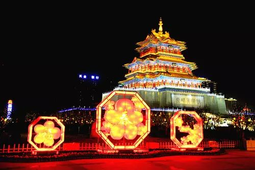 夜色下金碧辉煌的清渭楼美术博物馆