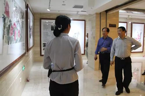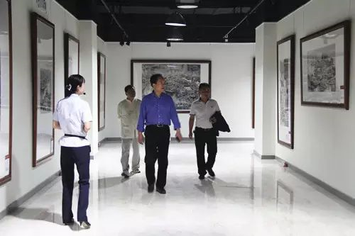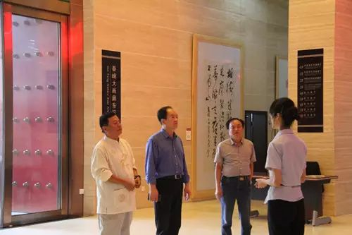 在郭峰馆长的陪同下,徐明正副局长仔细参观了美术馆的各个展厅,并表示:近年来,咸阳市依托厚重历史文化底蕴,大力发掘优势文化资源,着力发展文化旅游事业,取得了较大的成就。他说:“清渭楼美术博物馆对我来说是个熟悉的地方,再次踏足,很有感触,从纸上蓝图到一砖一瓦的建设再到今天这样美轮美奂的文化圣地,清渭楼美术博物馆的成长可喜可贺。它填补了咸阳长期以来没有专业美术馆的空白,是里程碑式的存在,这也是咸阳旅游文化事业发展的一项重大成就。省旅游局将一如既往的支持清渭楼美术博物馆,将其纳入省内旅游路线的总体规划,让更多的游客感受到它的厚重历史,享受书画艺术的精神熏陶和心灵的升华。”