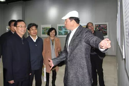 雒树刚部长在姜锋副省长、刘宽忍厅长、岳亮书记、卫华市长的陪同下参观中国农民画精品展