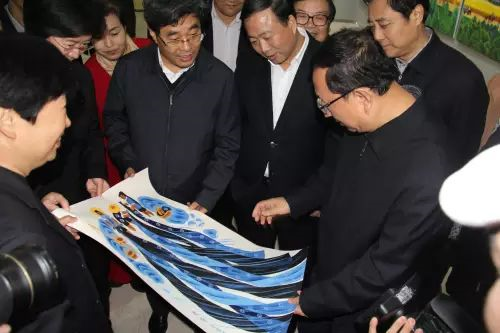 文化部部长雒树刚在姜锋副省长的陪同下参观第十一届中国艺术节中国农民画精品展