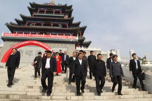 雒树刚部长一行在清渭楼南广场仰望雄伟壮阔的清渭楼,赞叹不已