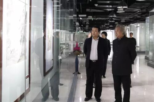 陶然副院长一行在郭峰馆长的陪同下,先后参观了清渭楼美术博物馆中国当代书画展厅、近现代书画展厅和古代书画展厅以及被文化部评为“2015年度全国美术馆优秀展览项目”的赵少昂艺术专题展览厅,并认真了解了我馆的历史沿革和发展概况。在参观过程中,陶然副院长不时驻足对画作仔细欣赏。参观结束后,陶然副院长表示:清渭楼美术博物馆里一流的设施、布展格局以及丰富的馆藏作品带给我很大的震撼,郭峰馆长收藏的书画作品的质量之高数量之多令人惊叹,坚持公益办馆的理念以及富贵不忘桑梓,倾情回报家乡的博大情怀令人钦佩!希望以后可以在清渭楼美术博物馆举办自己的书法展览。