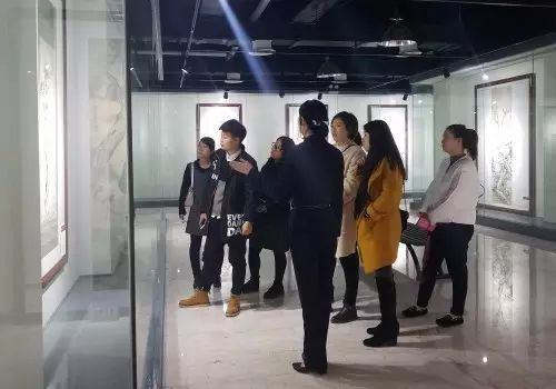 在讲解员的带领下员工们参观中国近现代书画展览厅